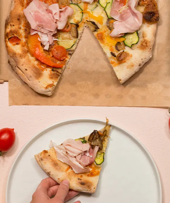 Zum Servieren von Pizzastücken, Focaccia und gewürzten Broten ist Olà die ideale Verpackung, da sie das Fett aufnimmt und vermeidet, dass man sich beschmutzt, wenn man das Produkt „on the go“ verzehrt.