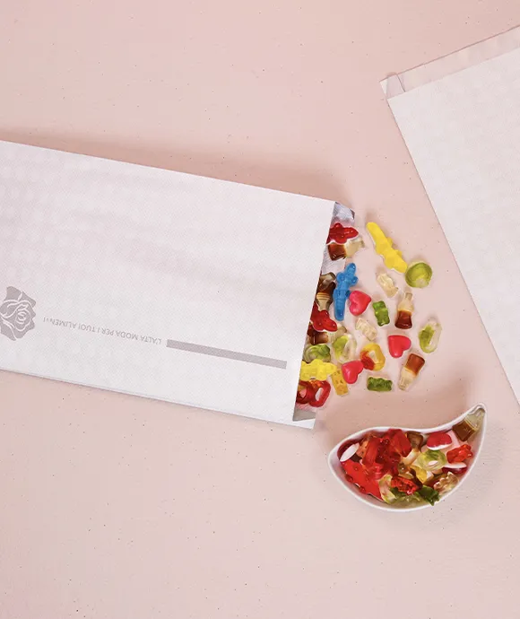Esseoquattro bietet intelligente Verpackungen, die die Eigenschaften von Süßwaren länger als andere Verpackungen bewahren, fettdichte Beutel und Papier für einen tadellosen Service und Einzelstoff-Papierverpackungen, die sich für verschiedene Zwecke eignen.