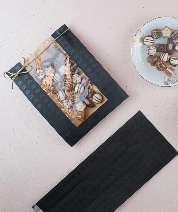 Passend zum Papier gibt es auch den Frischeschutz-Beutel, der sich perfekt für den Verkauf von Süßwaren an der Selbstbedienungstheke eignet, und den Frischeschutz-Beutel mit Fenster, der dank seines transparenten Mittel- oder Seitenstreifens Kekse, Gebäck und Kleingebäck in ihrer köstlichen Schönheit ausstellt.