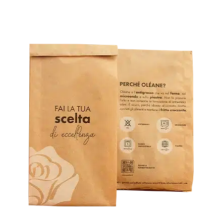 Dank ihrer technischen Eigenschaften bieten sie bessere Leistungen als herkömmliche Verpackungen. Die Olà-Beutel sind nicht nur fettdicht, sondern bewahren auch die knusprige Lebensmittelkonsistenz und ermöglichen ein einfaches Aufwärmen im herkömmlichen Ofen, in der Mikrowelle oder auf dem elektrischen Kontaktgrill. Dank der raffinierten und exklusiven generischen Aufdrucken verleihen die Beutel der Olà-Linie jedem Kontext auch einen Hauch von Klasse. Sie können die Beutel auch mit Ihrem eigenen Logo personalisieren und sie so zu einem wirksamen Kommunikationsinstrument machen, das Ihre Markenidentität und Ihre Werte vermittelt.